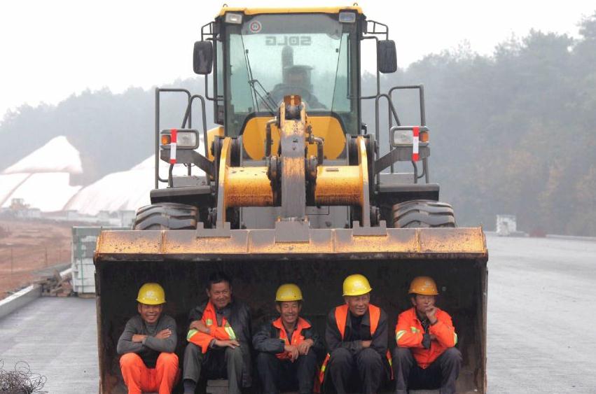 本周一,黄山在一场雨中迎来立冬。即使在下雨,城市建设者们仍坚守在各个工地岗位上,市重点工程G205国道改建工程工地上,工人们趁着施工休息间隙,躲在挖掘机的挖斗内避雨休息。